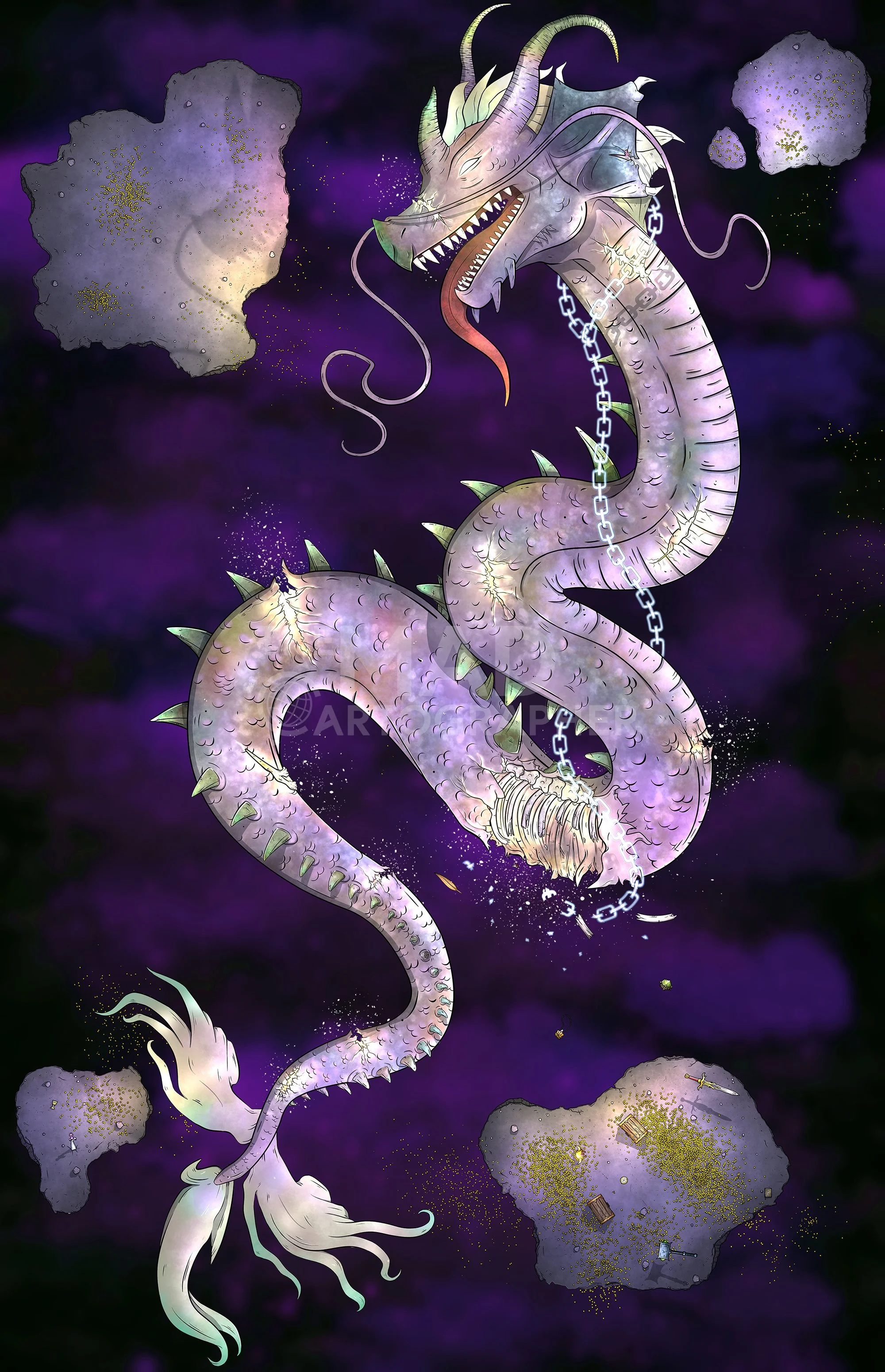 CELESTIAL DRAGON | 20x31 | Corpse of a giant Celestial Dragon drifting with its hoard and optional darker color variant. [🎨 Color Variants]