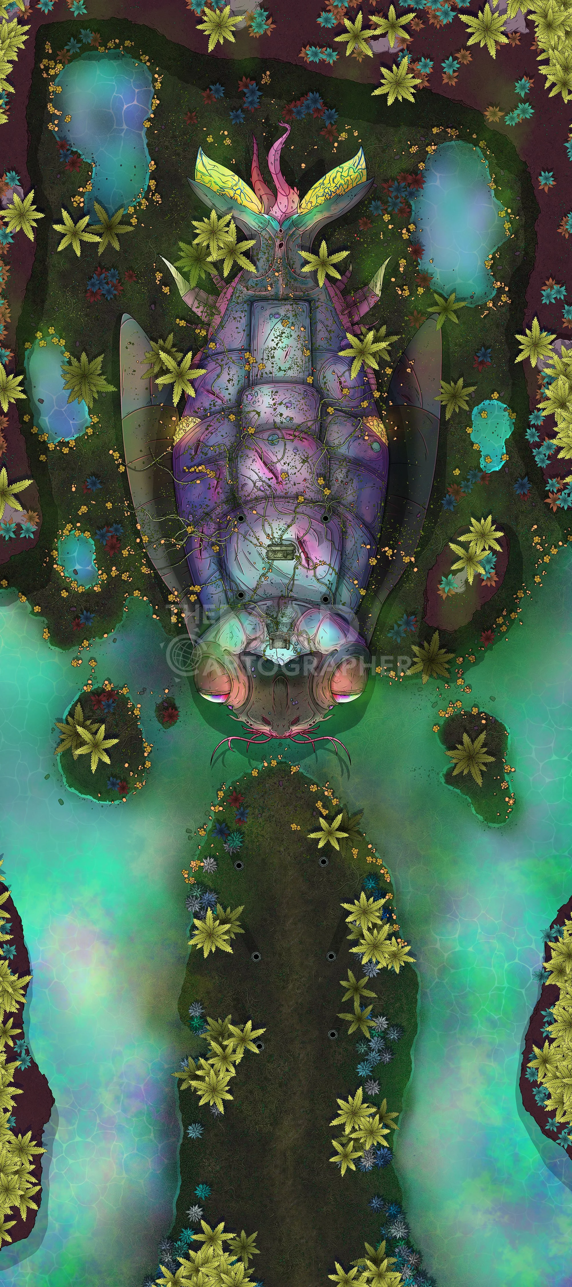 ASTRAL PRAWN | 20x45 | Space goblins worship a massive astral shrimp in swampy planetoid, revered for its ancient wisdom.