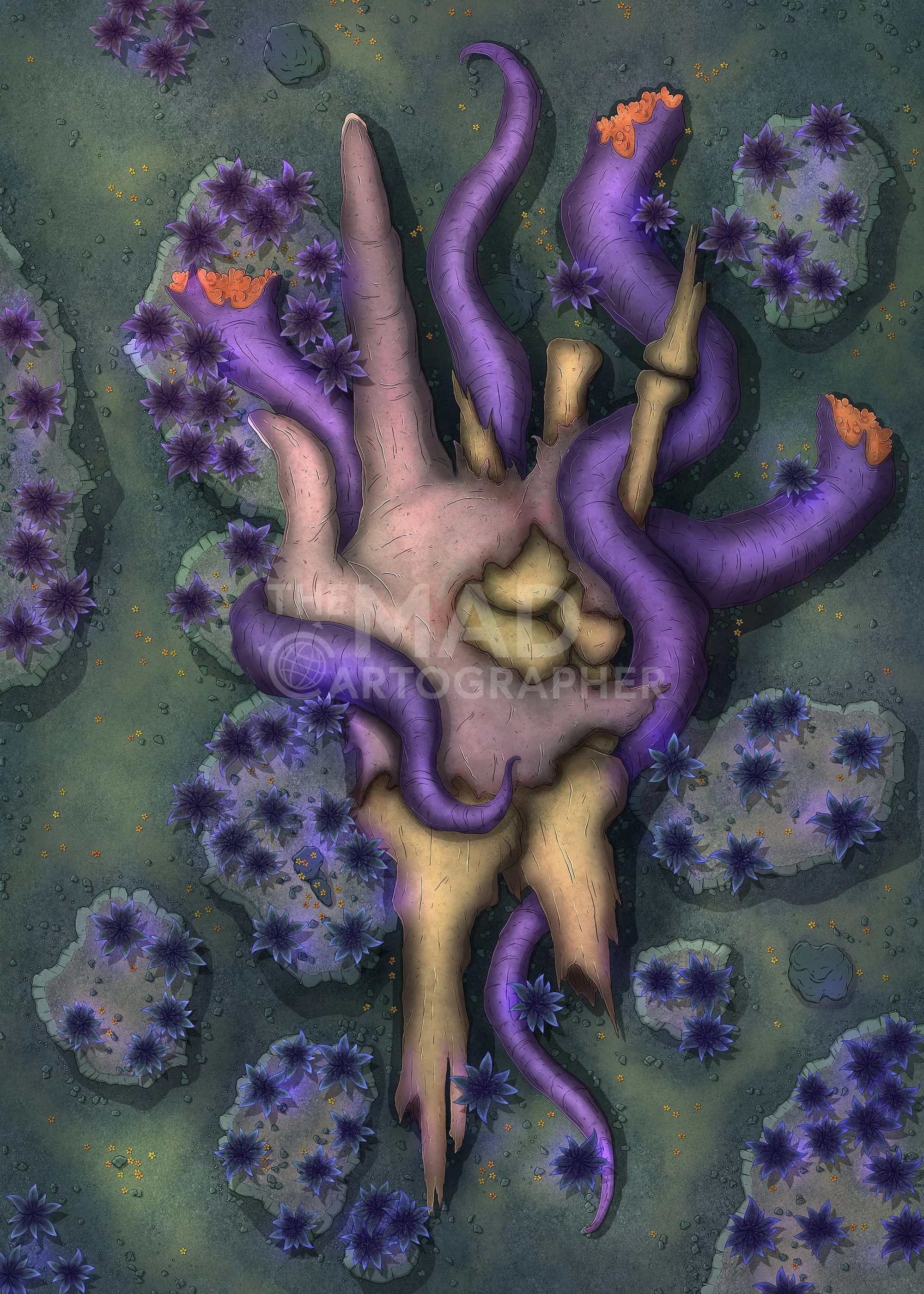 DEAD TITAN HAND | 25x25 | The hand of a dead god has fallen on this planet, and as natural life consumes the remains, so too does it feed upon the world.