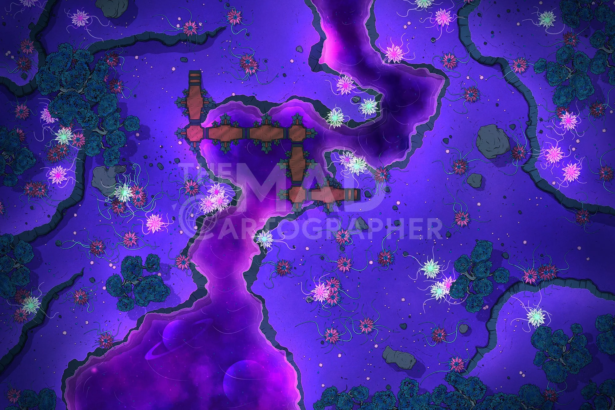 SPELLJAMMER SHIPWRECK | 20x30 | Damaged Astral Galleon wreck drifting in wildspace, with functional helm and signs of a beast attack. [🏨 Multi-floor Map]