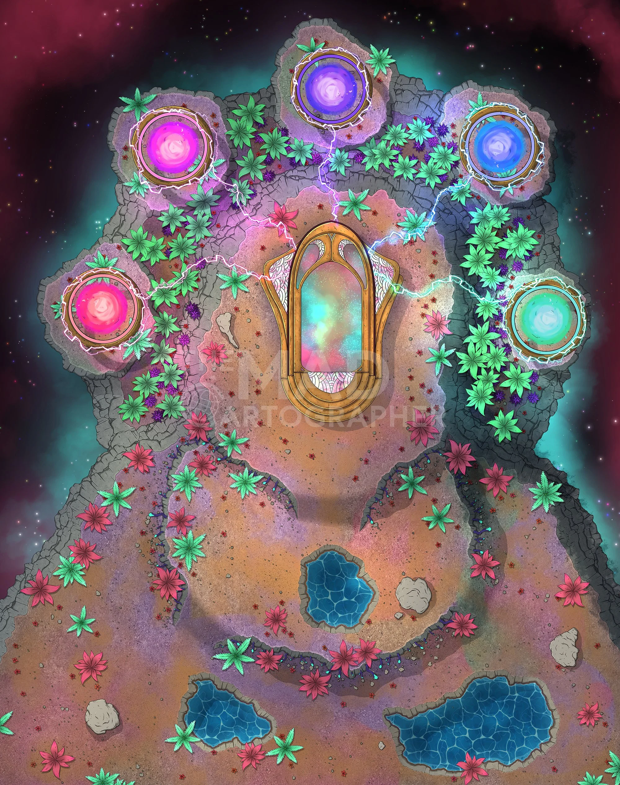 PORTAL RINGS | 30x38 | Tropical island with a nexus of intergalactic travel, featuring a ring of portals and optional lightning effects. [🪑 Asset Variants]