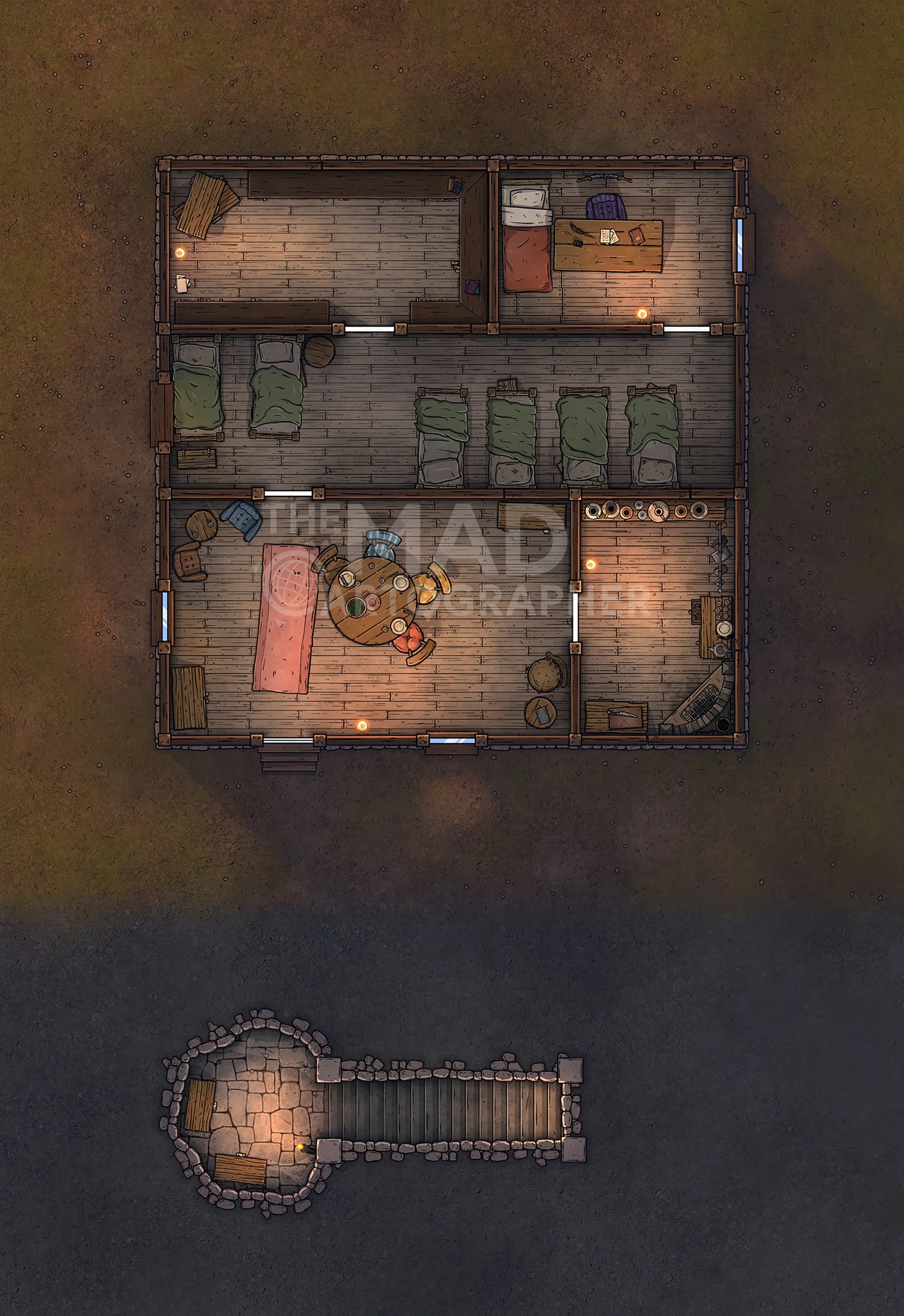 AMBERDUNE HIDEOUT | 11x16 | Arid town residence with gang beds, a leader’s office, and a secret storeroom entrance.