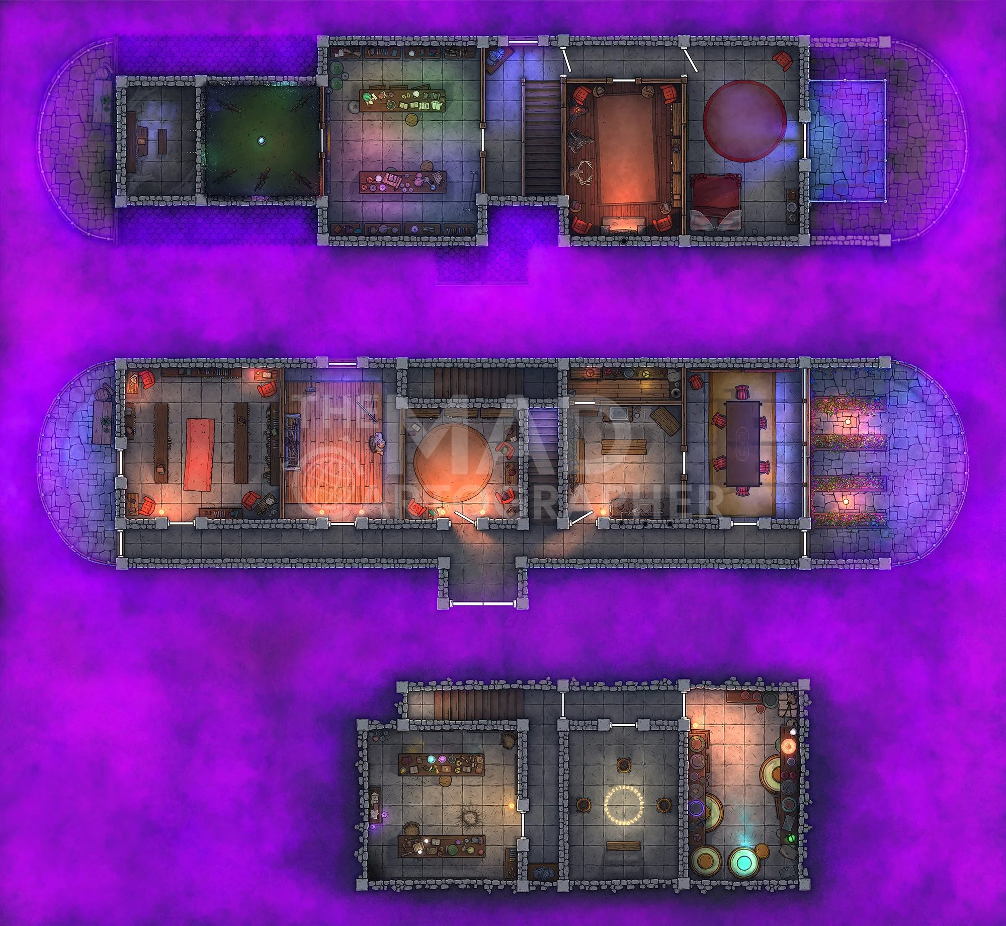 FISTANDIA'S MANSION | 25x23 | Floating magical mansion with multiple floors, featuring an Archmage’s living quarters, experiments, and secrets.