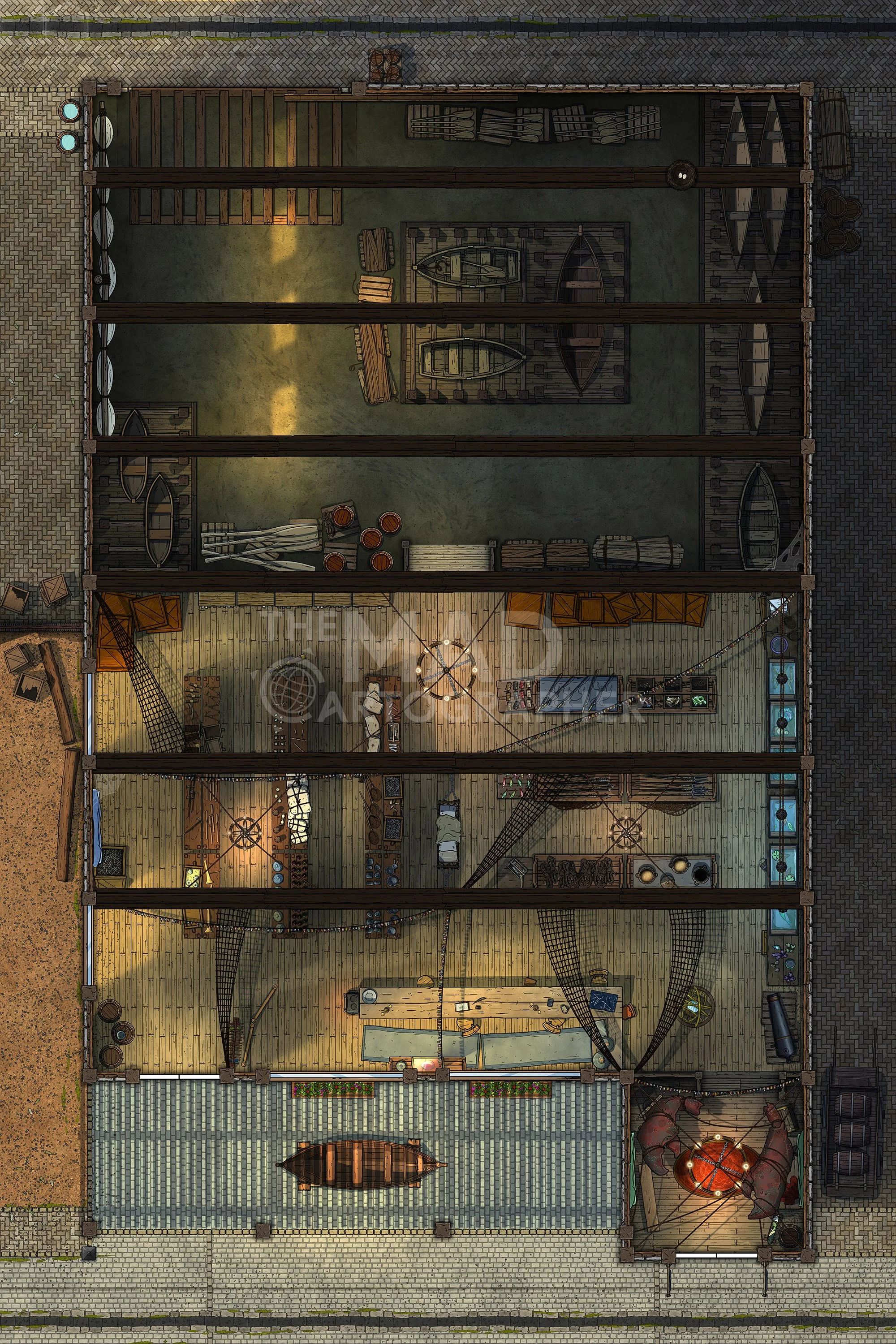 NAUTICAL SHOP | 20x30 | A large store front and warehouse specialising in nautical and maritime equipment. [π Night & Day Variants] [π¨ Multi-floor Map]