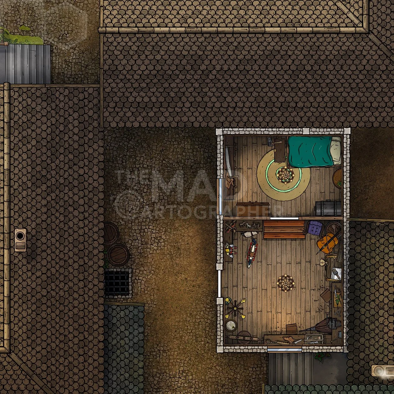 TANNER'S SHOP | 15x15 | A leatherworking shop with workshop, curing area and store front. [π Night & Day Variants]