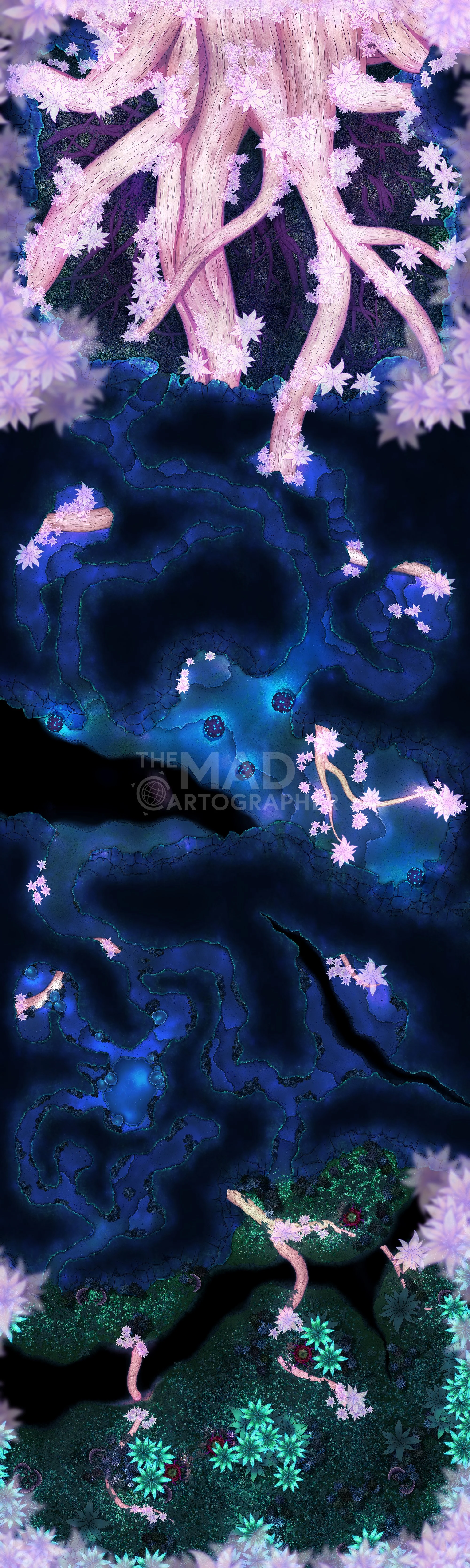 WORLD TREE ROOTS | 30x100 | A truly massive cave network winding around the roots of a tree large beyond imagination.