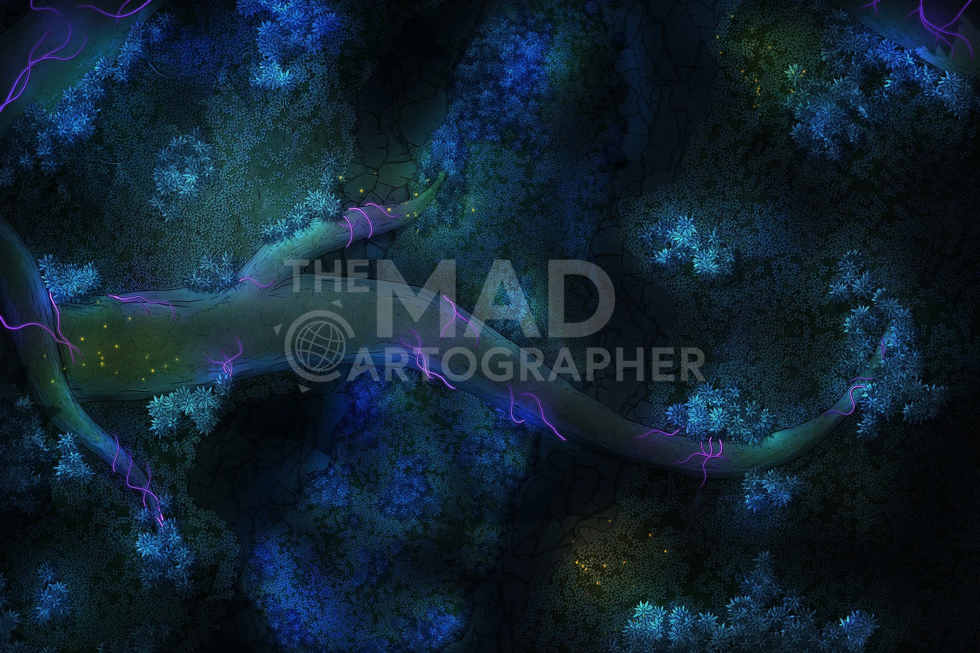 FAEWILD CANYON | 16x24 | A dark cavern pierced by an enormous root from an even bigger plant on the surface. It serves as a bridge for navigating this cavern quicker. [πͺ Asset Variants]