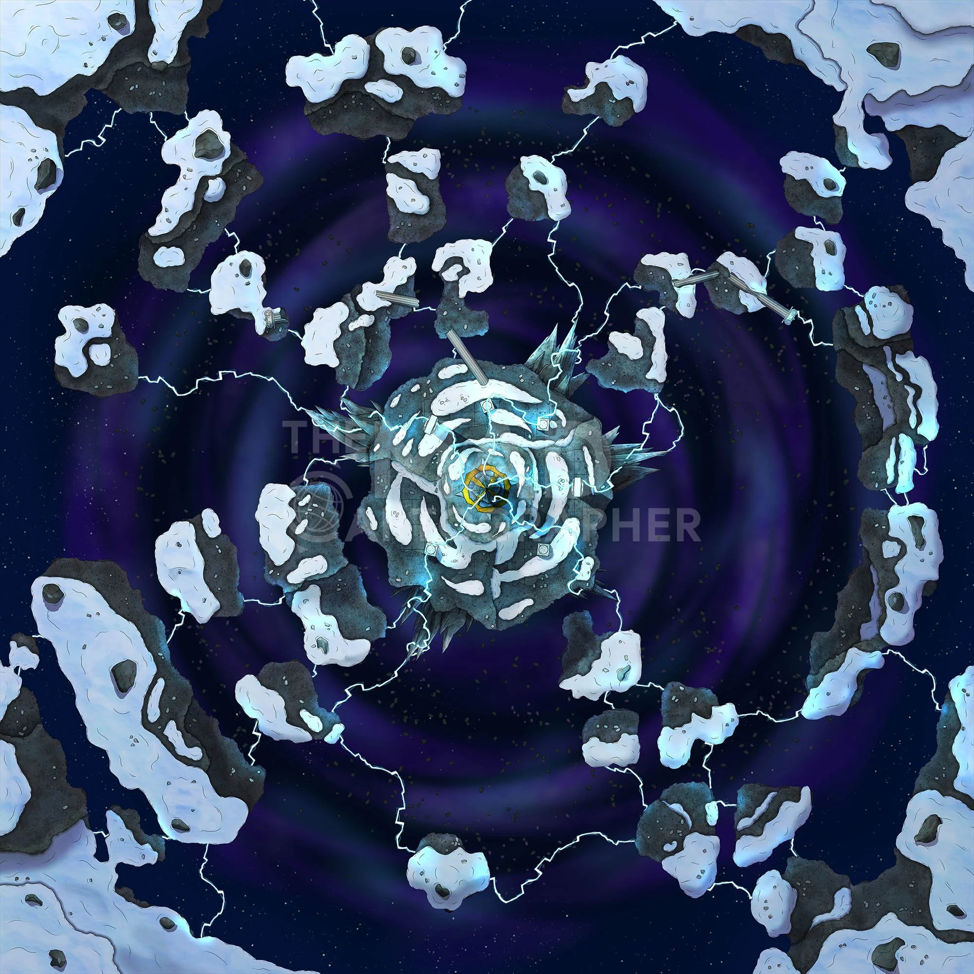 WINTER'S BREAK | 39x39 | A vortex tearing apart the snowy landmass, with drifting platforms and whirling debris. [πͺ Asset Variants]