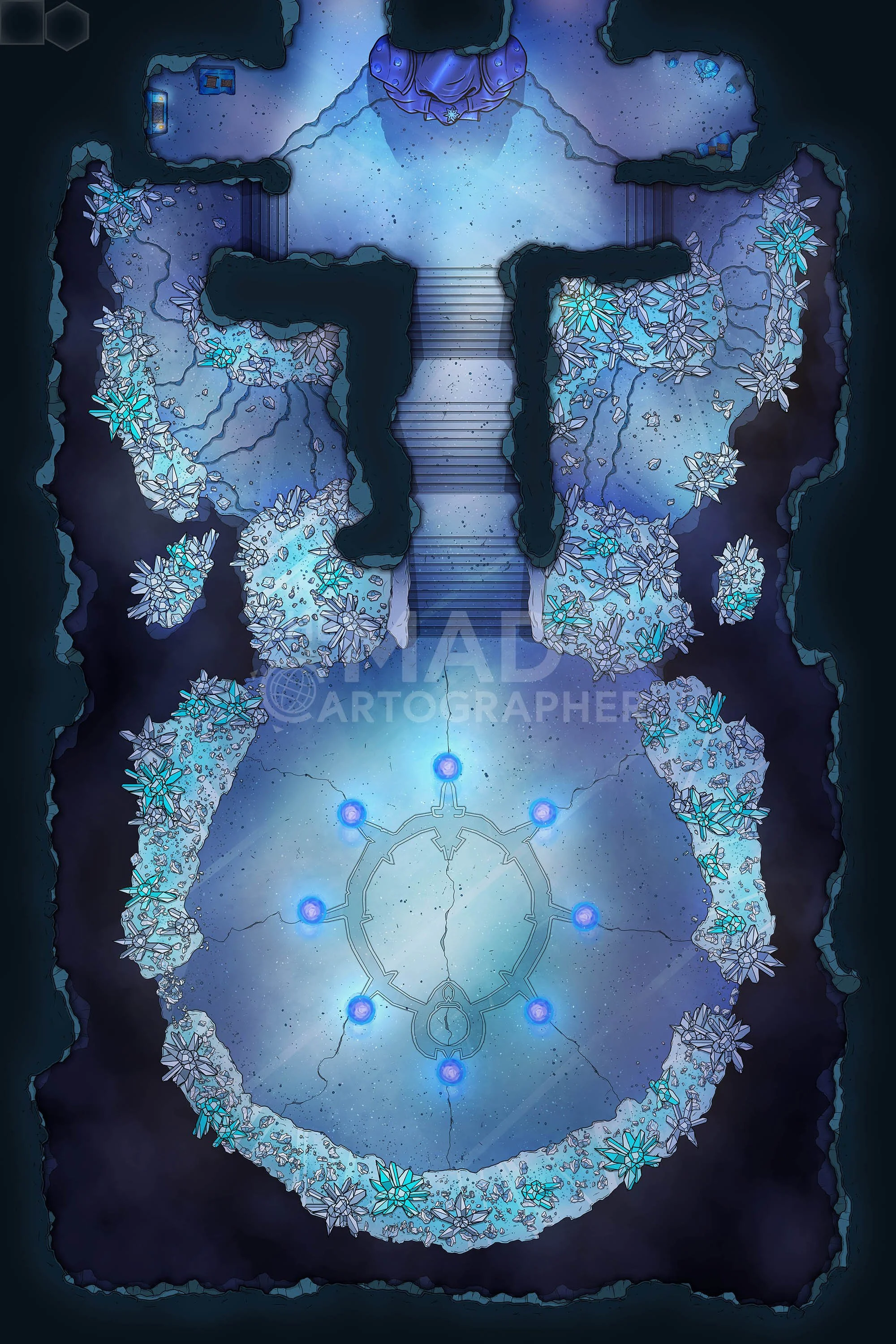 THE FROZEN THRONE | 20x30 | A cavern with a Lichβs sanctum, surrounded by a ring of crystals. Runes of Domination line the main platform. [π¨ Color Variants]