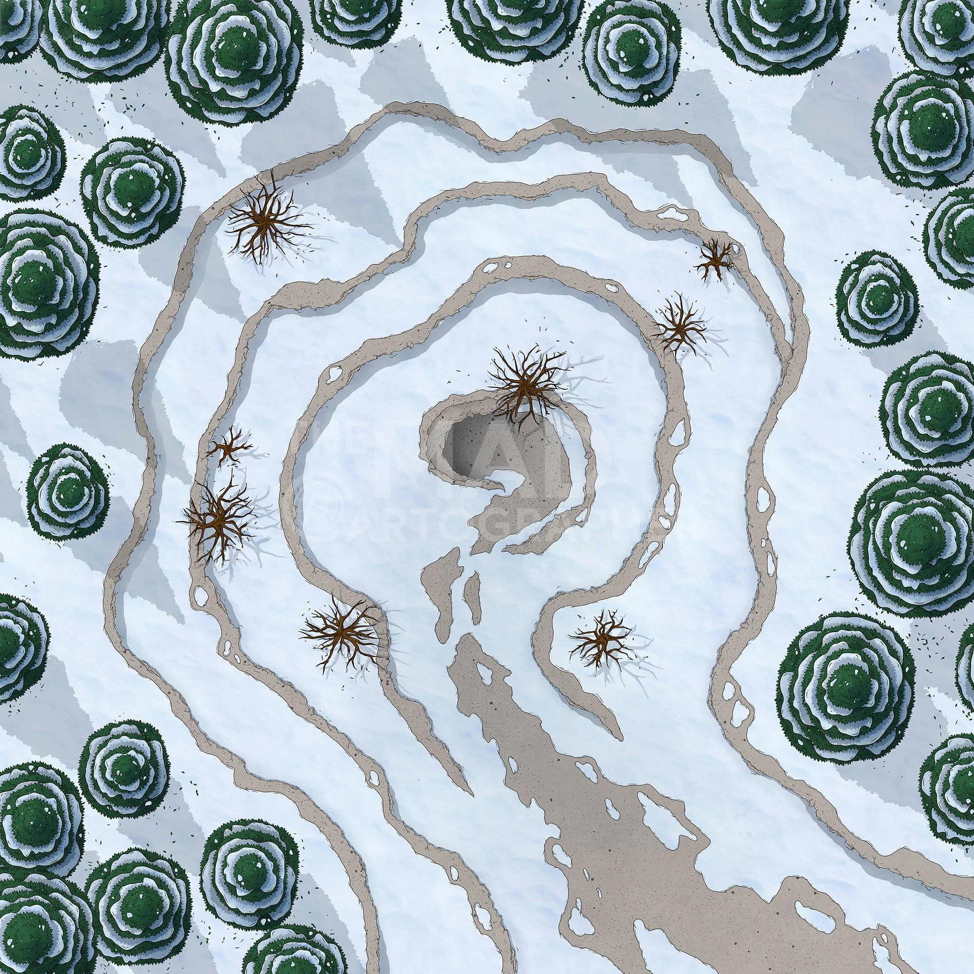 ICE SPIDER HOLLOW | 25x25 | A snowy forest leading to a frozen cave network filled with webs and the remains of unlucky victims. [π Night & Day Variants] [π¨ Multi-floor Map]