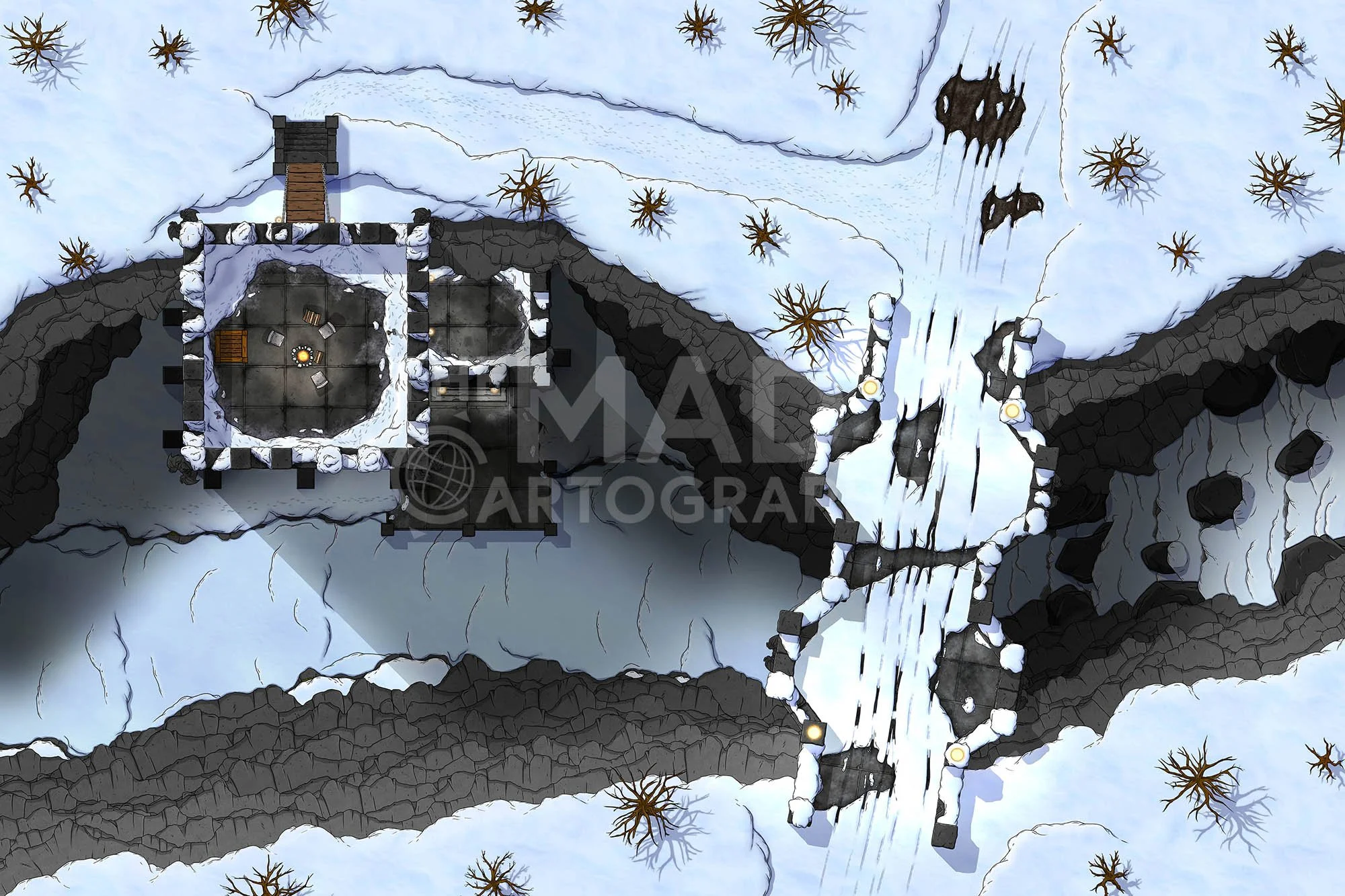 WINTER WATCHTOWER | 33x22 | A vertical map with a watchtower, spanning bridge, and multiple levels for exploration. [π Night & Day Variants] [π¨ Multi-floor Map]