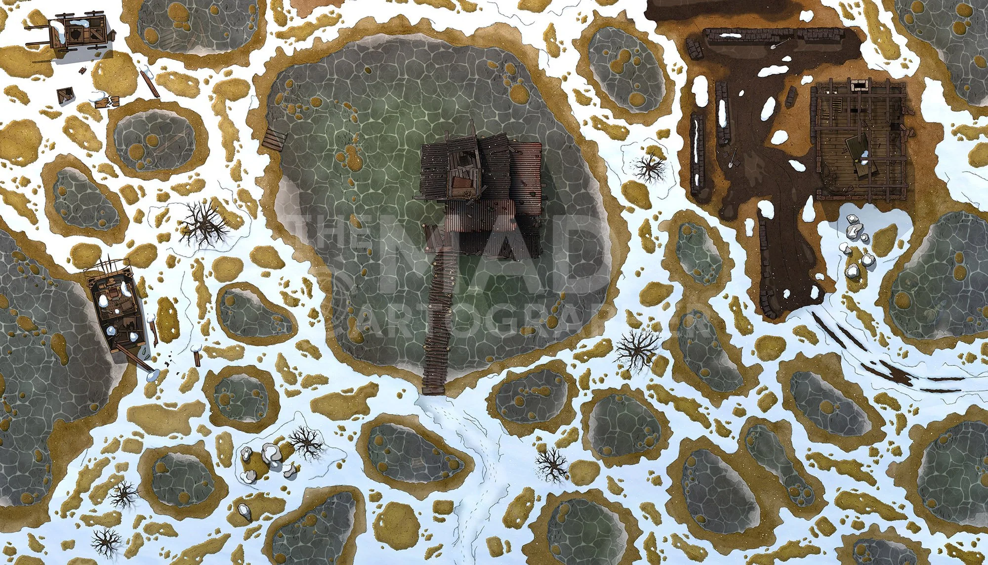 BALDAR'S SLOUGH | 35x20 | A frigid expanse of swampland, dotted with ruins and makeshift shelters for those who would brave the wastes. [π Night & Day Variants] [π¨ Multi-floor Map]