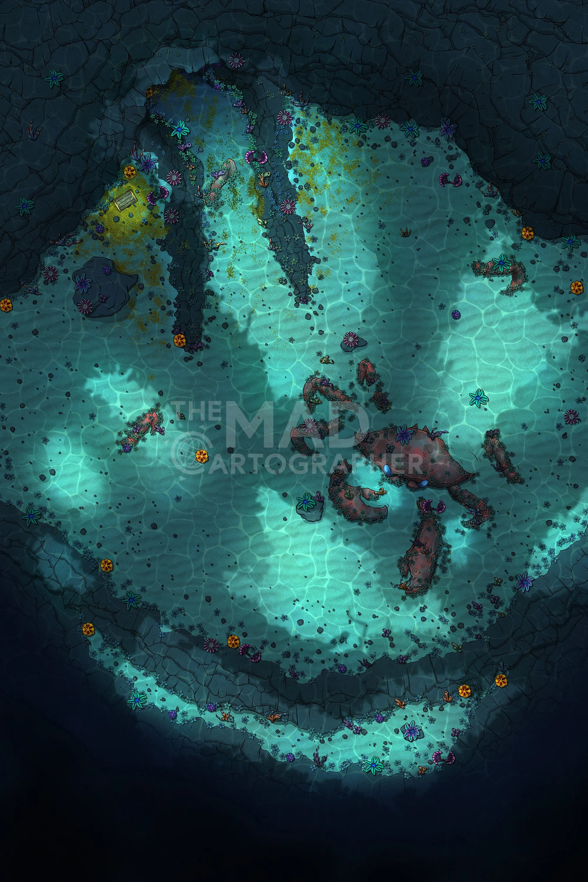 CRAB LAIR | 16x24 | A shallow cove under the water contains the corpse or moulted shell of a giant crab. [πͺ Asset Variants]
