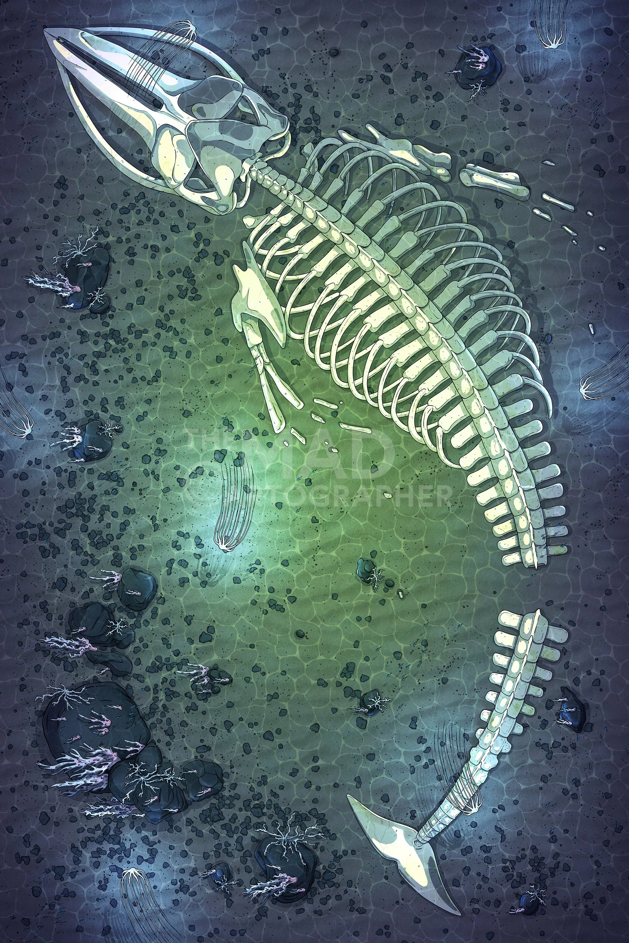 WHALEFALL | 20x30 | The bones of a great leviathan have sank to the seabed, attracting all manner of deep-sea life. [🪑 Asset Variants]