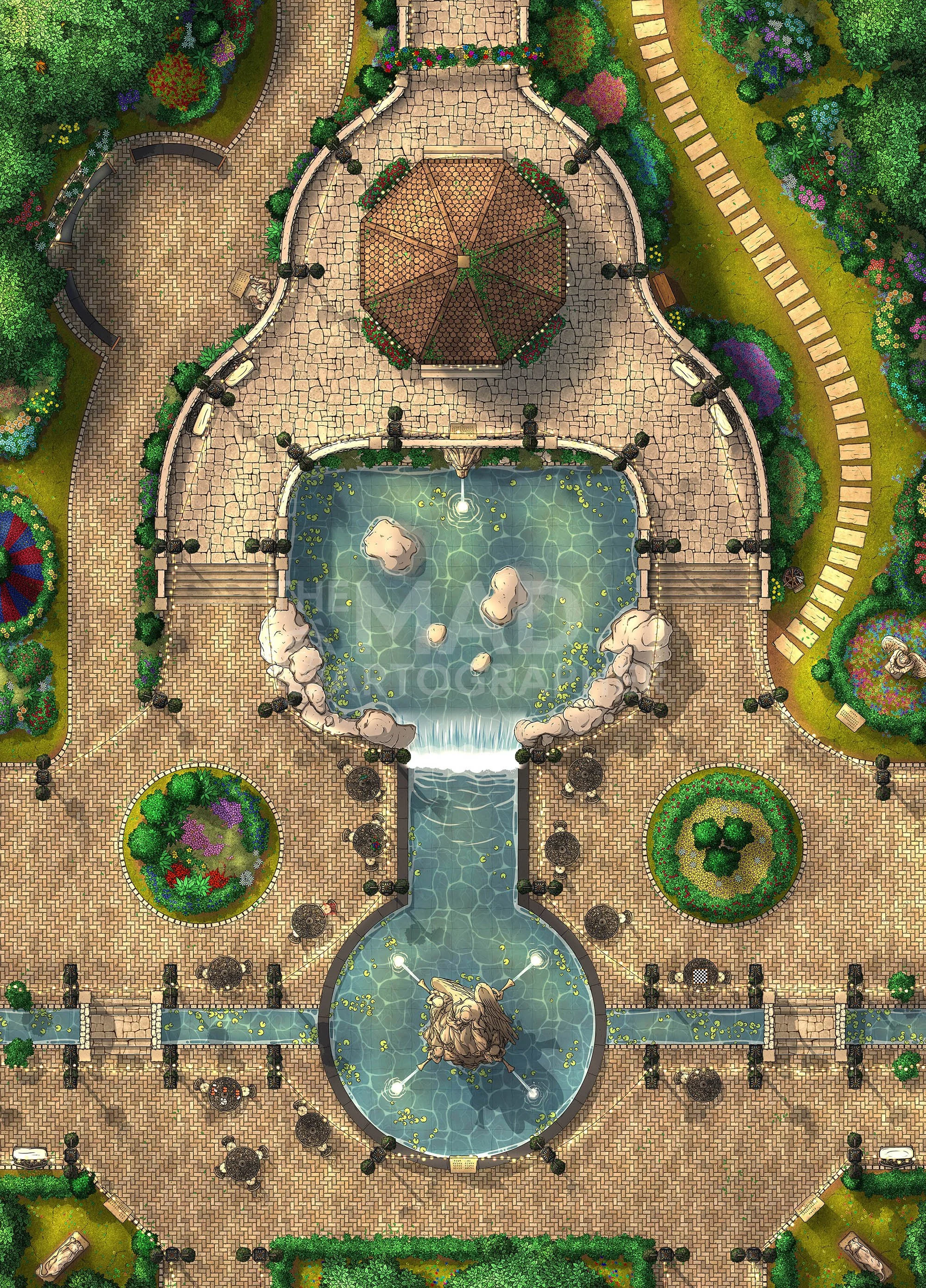 GRAND GARDENS | 23x32 | A lavish tiered garden with extravagant water fountains serves as the location for any important social occasion. [π Night & Day Variants]