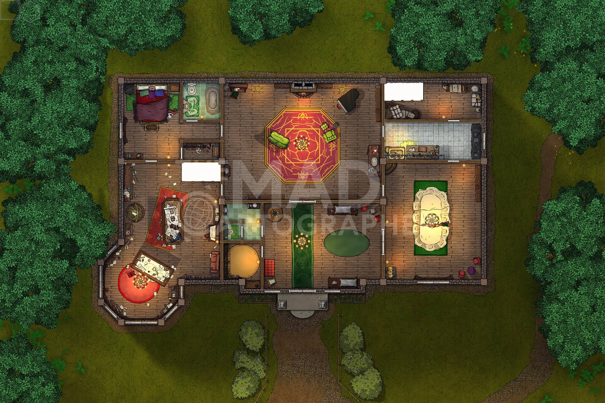 CARTOGRAPHER'S MANSION | 30x20 | The chaotic and neglected home of a mad cartographer who has become obsessed with making maps. Very meta. [π Night & Day Variants] [π¨ Multi-floor Map]