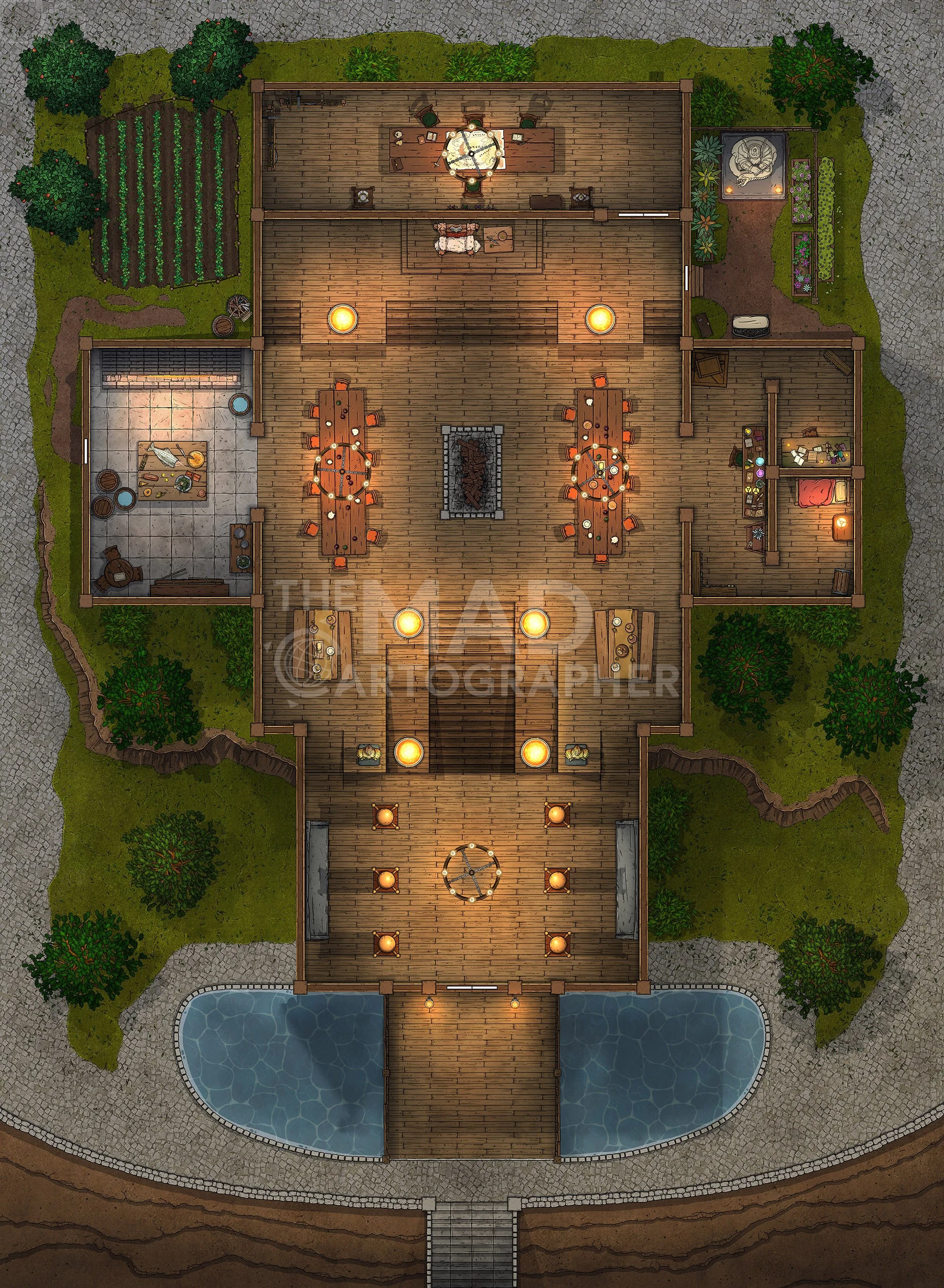 JARL'S HALL | 22x30 | A traditional Viking longhouse ready for feasting. The surrounding area contains herb gardens, shrines to outlawed deities, and more. [π Night & Day Variants]