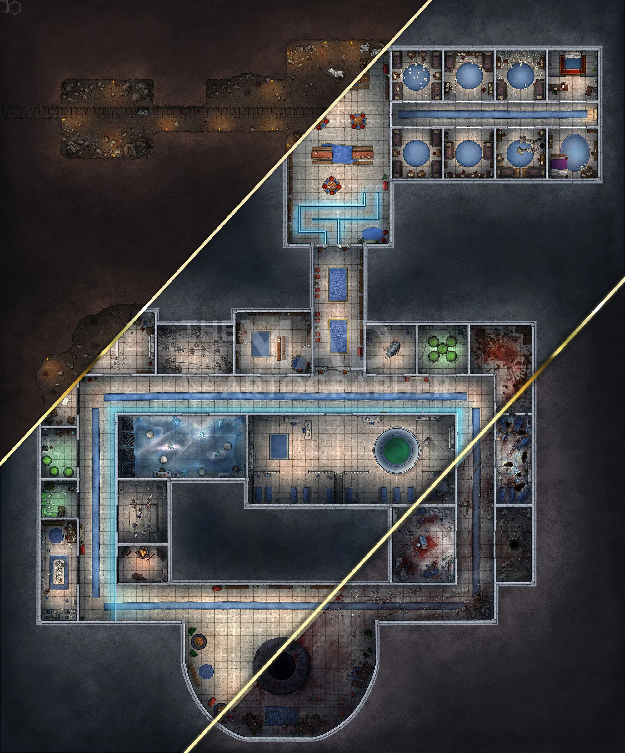 THE FACILITY | 48x60 | Three significantly different variants of the same laboratory at different points of construction - concept, present day, and disastrous future. [πͺ Asset Variants]