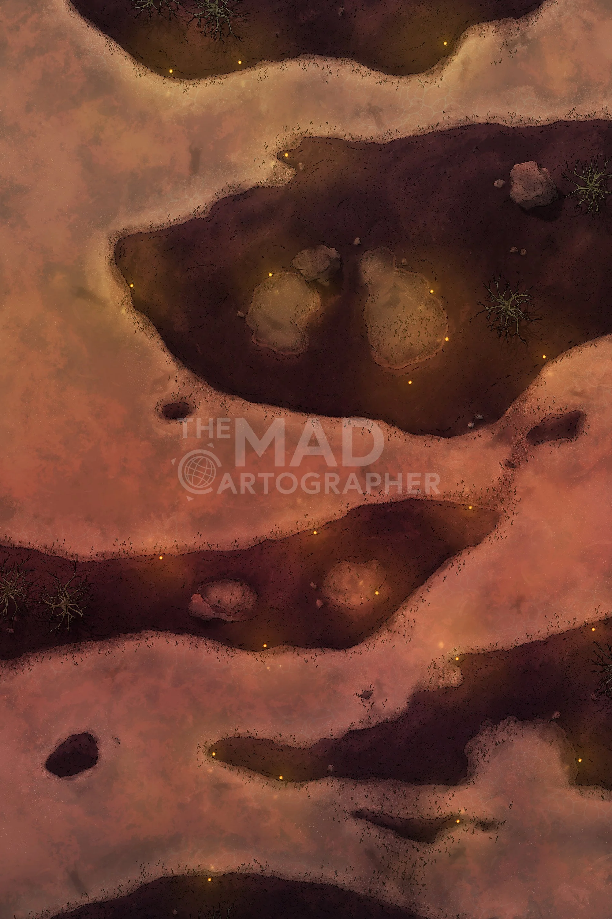 DEAD MARSH | 20x30 | A blood-red swamp scene under a crimson sunset, with fireflies emerging as the waters shift. [π¨ Color Variants]
