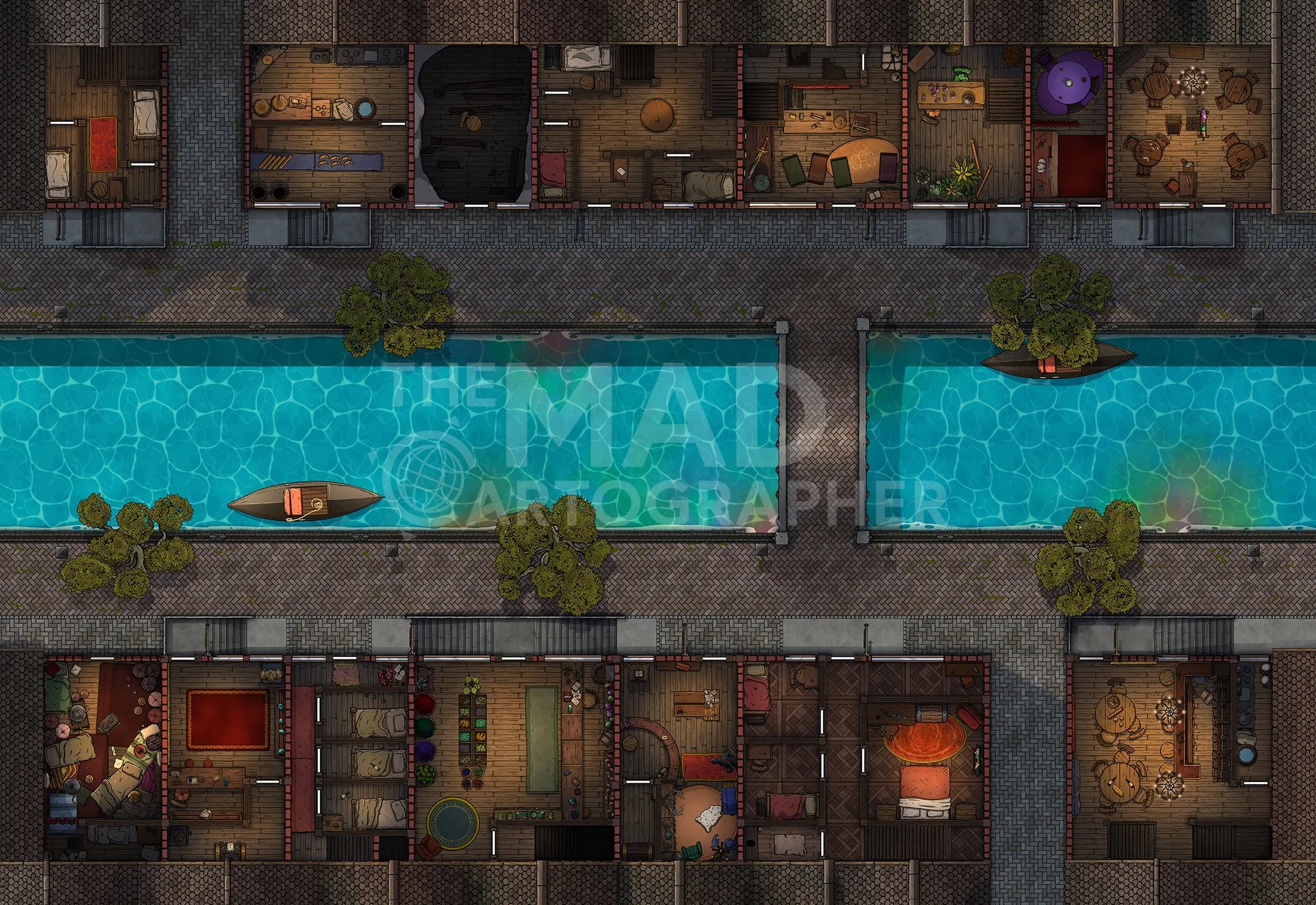 CANAL STREET | 32x22 | Many small dwellings and businesses flank the city canals, with some having further dealings above (and below...) [π Night & Day Variants] [π¨ Multi-floor Map]