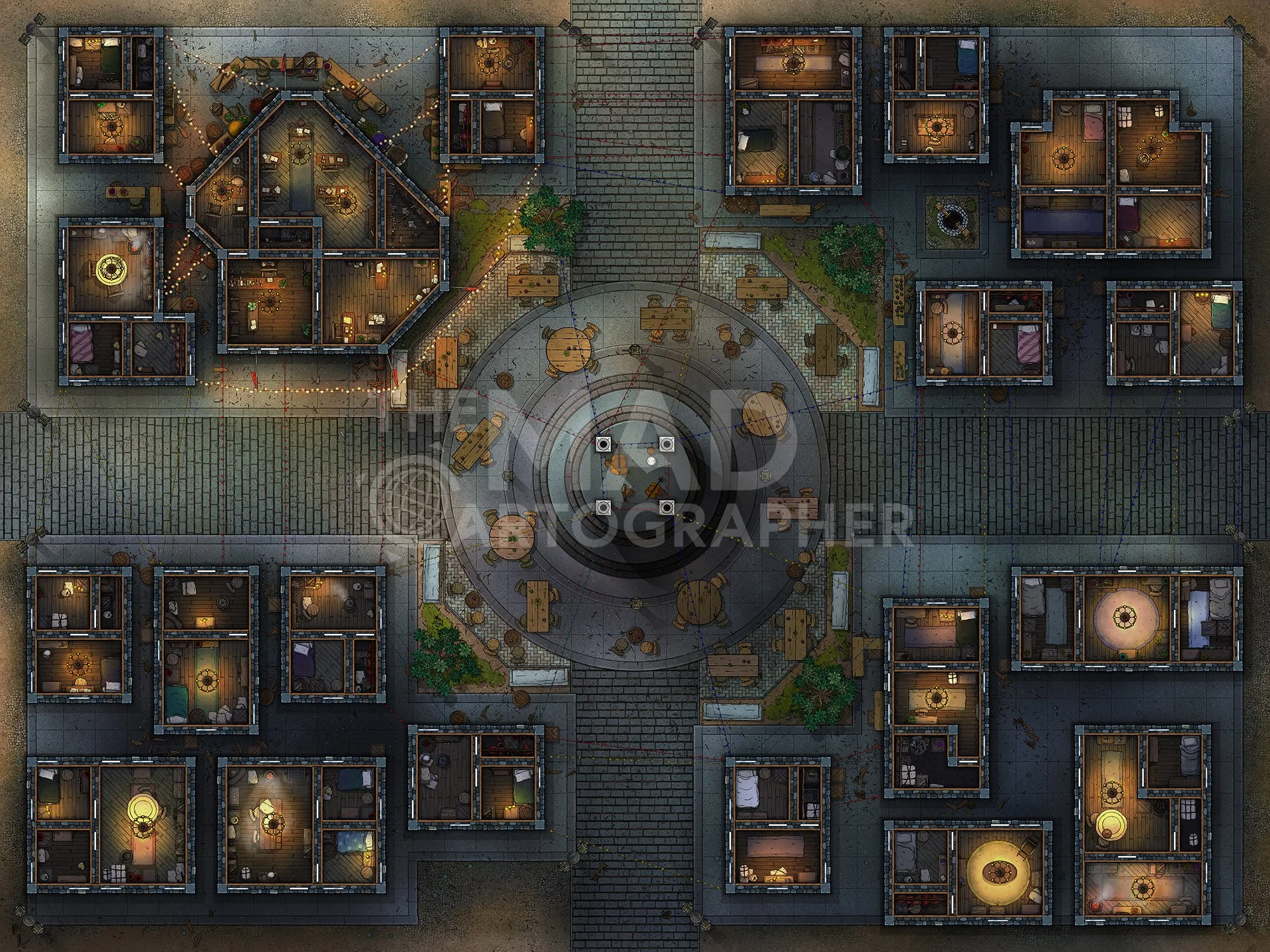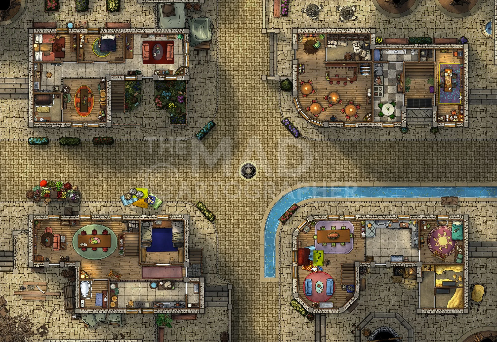 CROSSROADS | 32x22 | A busy junction in this section of the city, with multiple high-traffic buildings sat on each corner. [π Night & Day Variants] [π¨ Multi-floor Map]