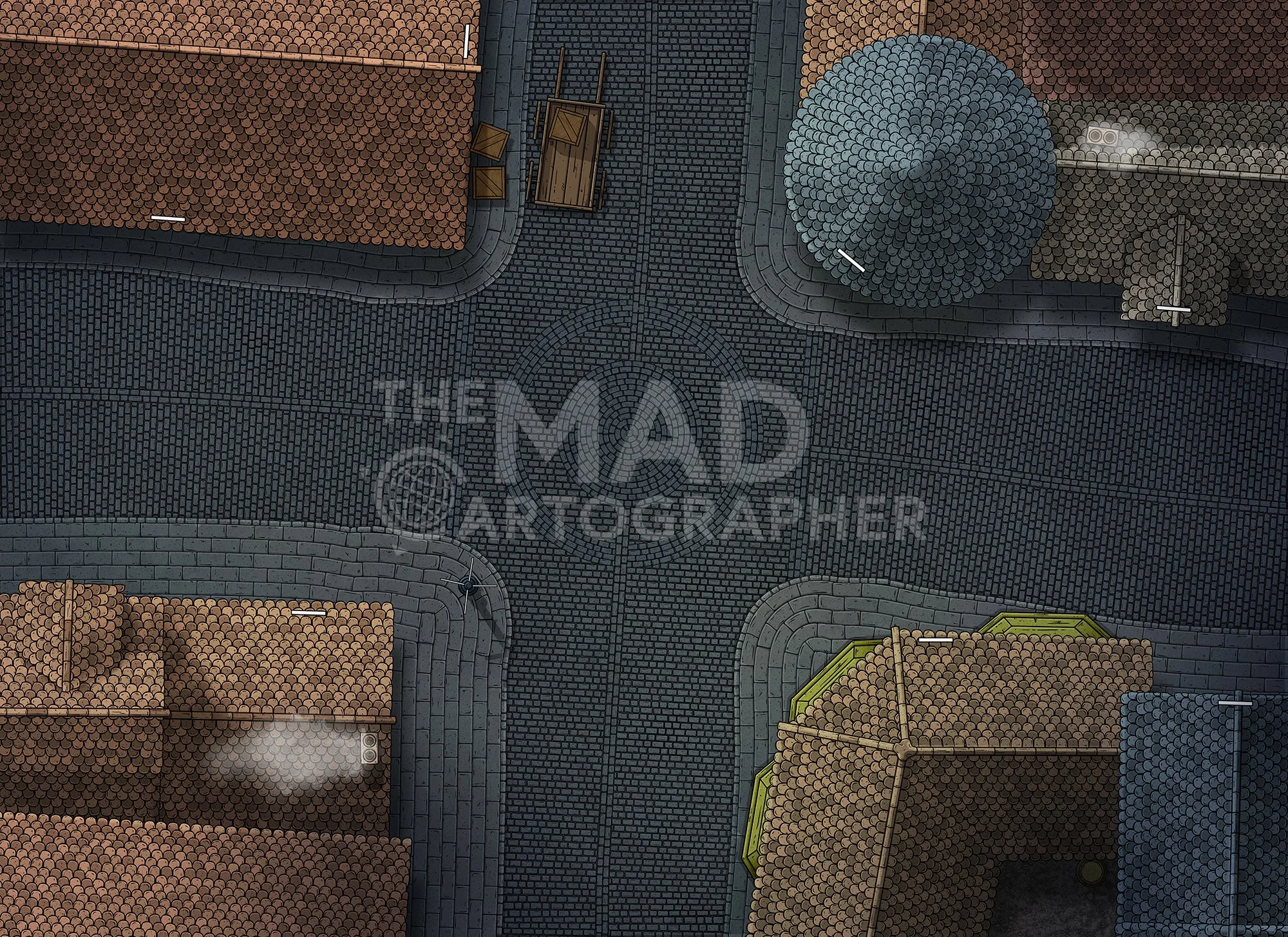 CROSSROADS | 22x16 | A crossroad junction within a bustling city. [🪑 Asset Variants] [🌓 Night & Day Variants]