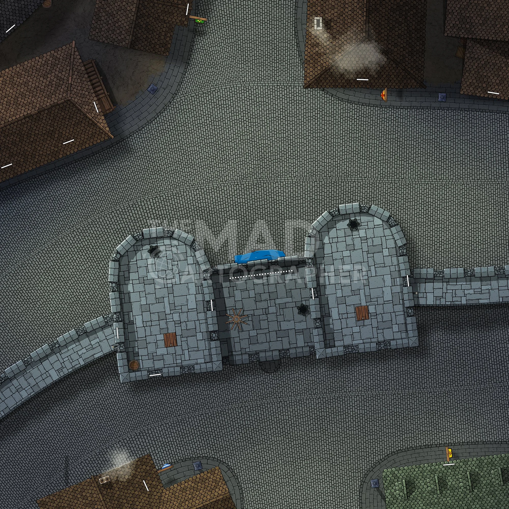 GATEHOUSE | 25x25 | This gatehouse serves as a check point and guard post, keeping the city secure. [🪑 Asset Variants] [🌓 Night & Day Variants]